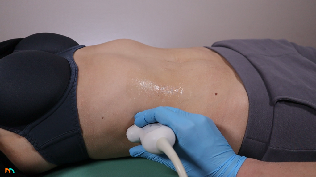 U szczupłych pacjentów możemy zlokalizować pole nadnerczowe nieco na lewo od aorty, umieszczając głowicę wysoko w nadbrzuszu, w okolicy wyrostka mieczykowatego