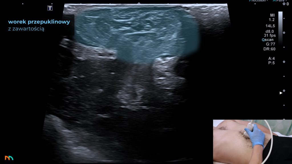 Koniecznym do zobrazowania przepukliny staje się manewr Valsalvy, prowadzący do zwiększenia ciśnienia w jamie brzusznej oraz do powrotu zawartości do worka przepuklinowego.